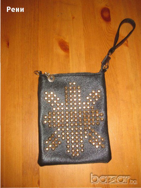 Черна дамска чанта - тип портмоне със златисти орнаменти! Перфектно състояние, не е носена!