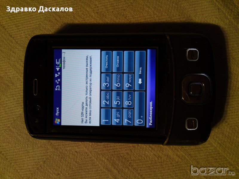 Интересен рядък апарат с Windows Mobile 6 и 2 сим карти.За съжаление липсва тъча и не мога да вляза в менюто,но изглежда че работи.Продава се само с батерия,без стилус и зарядно.