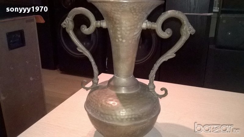 Амфора 32/29см-дръжки с лъвчета-внос швеицария...голяма красива и стилна...масивна и с орнаменти-от днес 28.02.22г пращаме със спиди или еконт с преглед и тест след превод на капаро за куриерската услуга поради зачестили некоректни потребители-поръчки само тук в саита! по телефона и със смс не! краини цени! бартери не правиме! всеки ден нови неща-още 2-3 наши обяви тук
