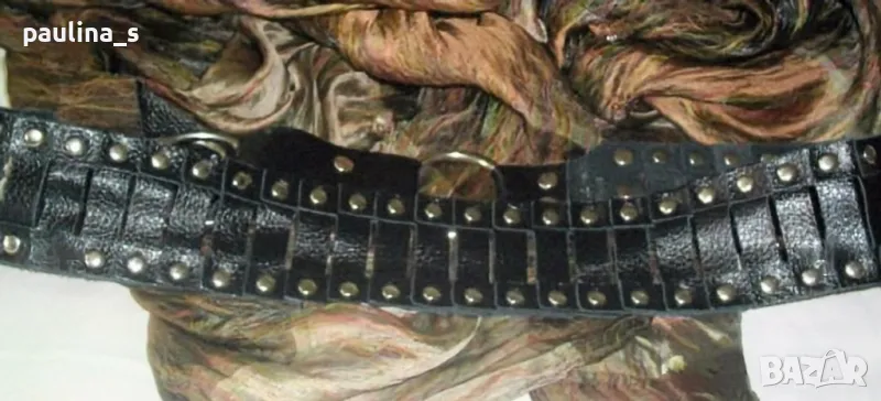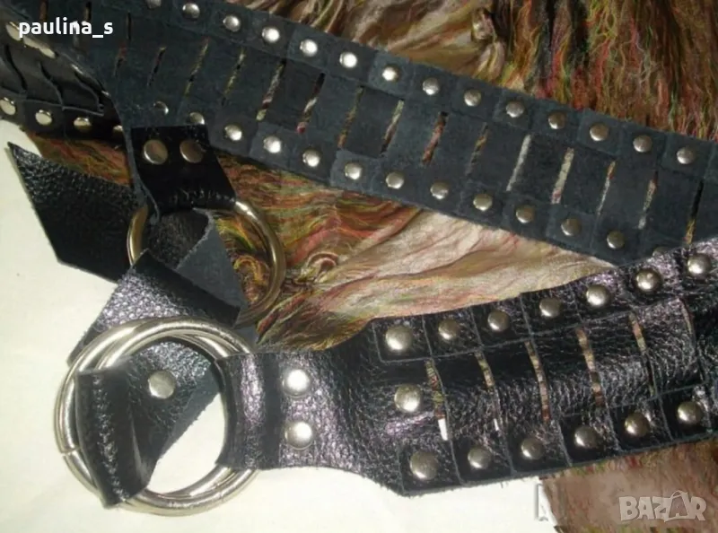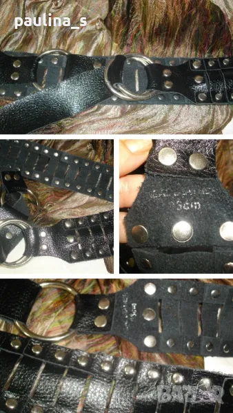 2️⃣. Колаж / L / 2XL / Винтидж / Черен Декориращ дамски колан / естествена кожа / genuine leather belt. Цената е крайна 54,99лв / 27,5 евро. Невероятен декориращ колан за талия или ханш с множество кабси. Кожата е мека- свински бокс, лъскава и леко еластична. Моделът е за външна декорация на тоалет, закопчаването е с токи. Дължина от тока до тока 78см / закопчаваща лента 26см / размер по етикет и щемъл за автентичност на кожата 95см / ширина 6см.