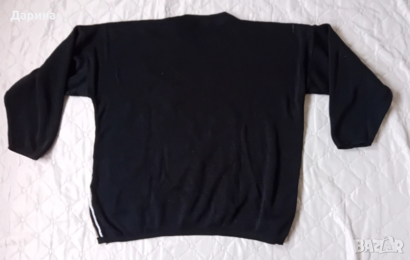 Дамска блуза , машинна плетка с шарена предница в гръб е черна /