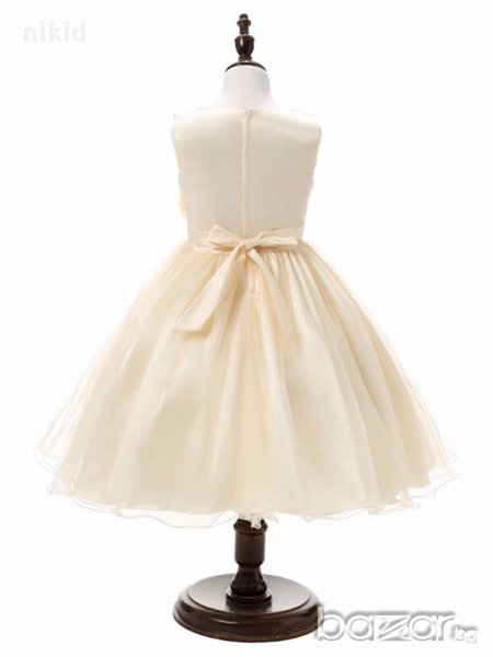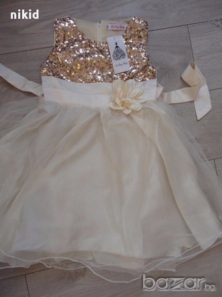 детска приказна официална празнична рокля в кремаво и златиста с пайети