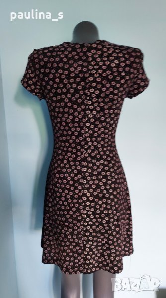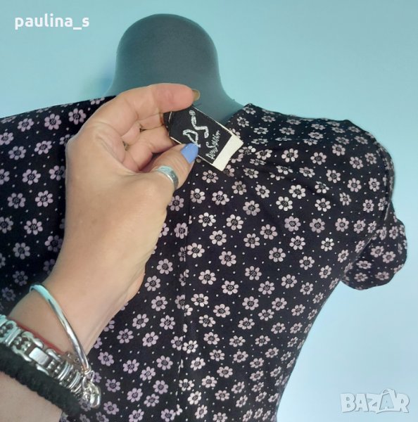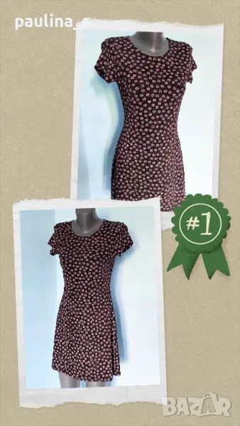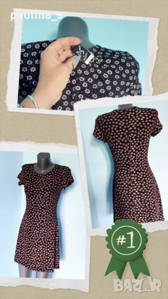 1️⃣. Колаж / M / 2XL - "P. S." / USA. Дизайнерска Пъстра рокля "P. S." - Pal Sister / USA. Цената е крайна 29,99лв / 15 евро. Моделът е обран, втален и с разкрояване. Материята е еластична ликра, десенът черно с флорален принт в Аметист. Дрехата е изискана, изчистена от кичозни декорации, разкрояването идва от нивото на талията. Моделът е винаги актуален, принтът свежарски. Без дефекти и етикет, като нова. Брандът е популярен с перфектно качество и актуално звучене!