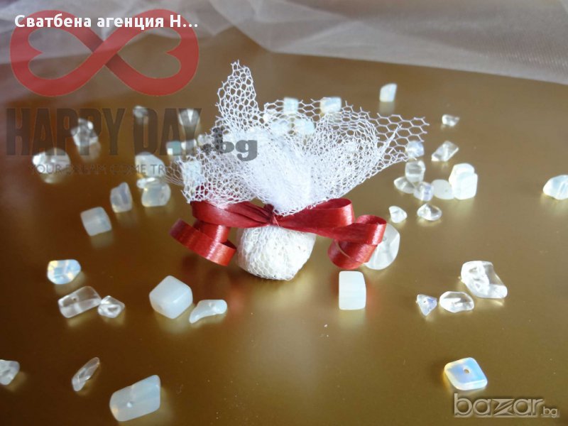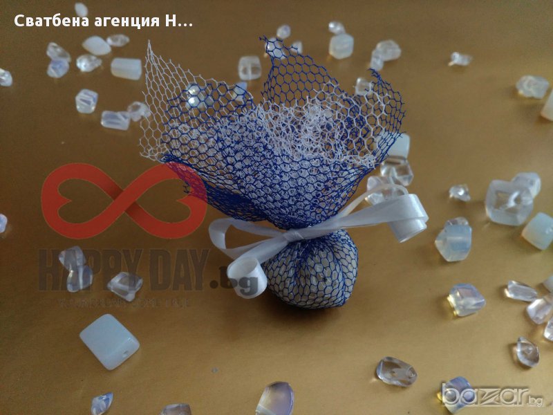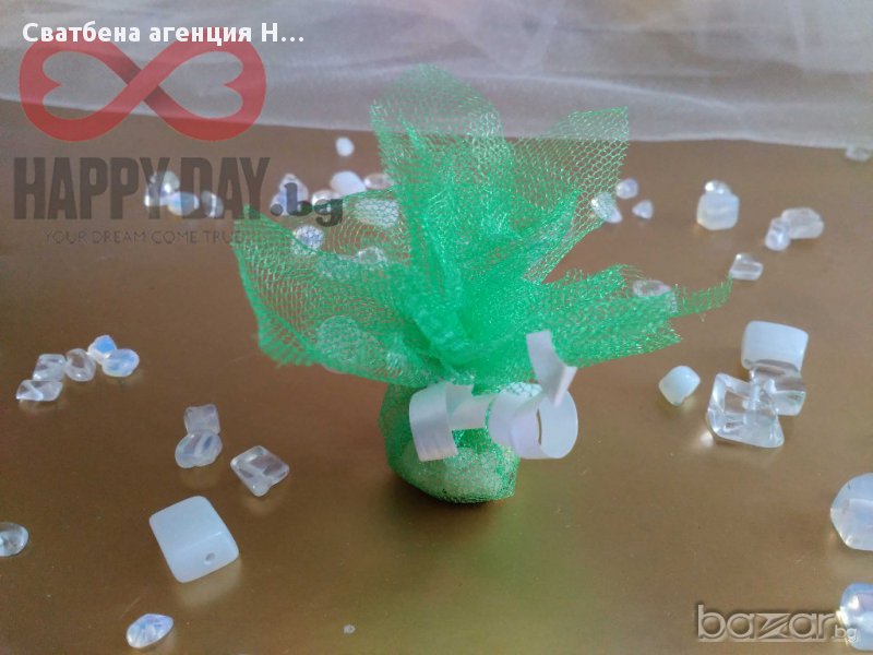 Сватбеното късметче за хвърляне Прима е изработено от два пласта тюл,стотинка за основа и ориз.Може да бъде изработено в цвят по избор.