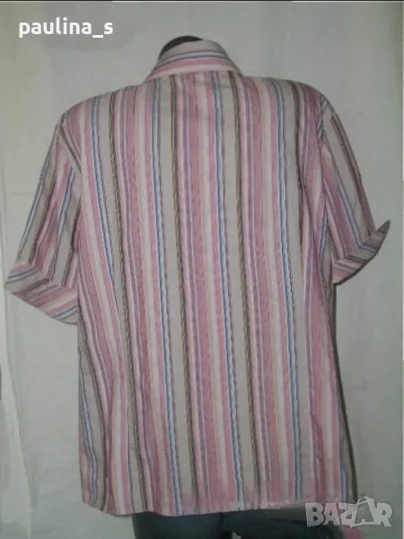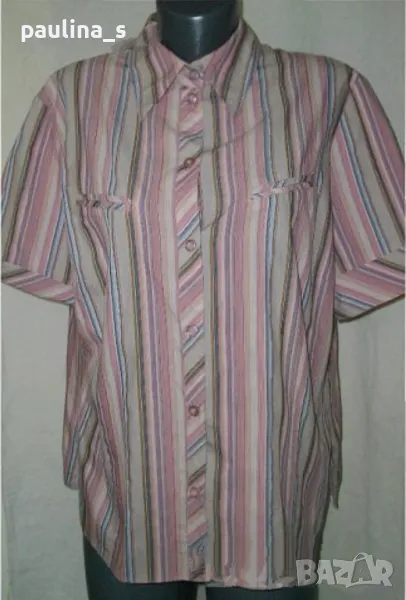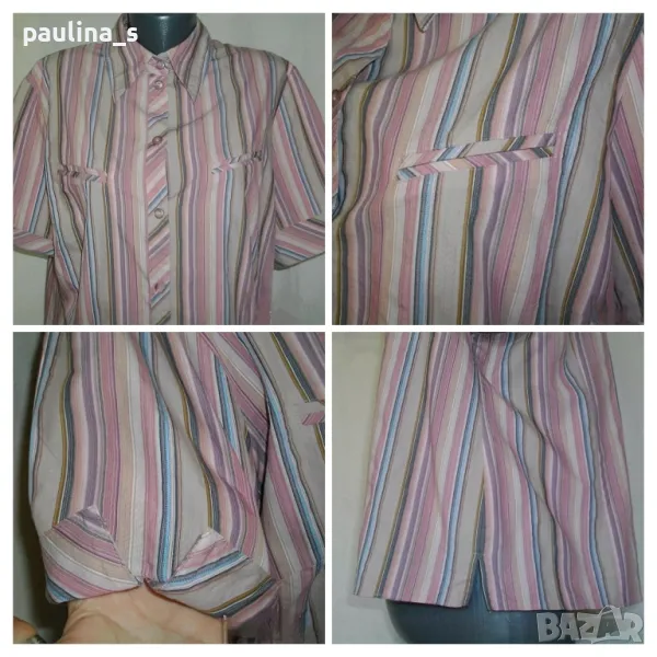 3️⃣. Колаж / XL / 3XL - Еластична памучна риза тип туника ”Chicc”. Цената е крайна 20 евро. Дамска еластична риза тип туника, голям размер. Материята е памук и полиестер, доста еластична. Десенът е в бебешко розово с вертикални разноцветни райета. Моделът спортно елегантен с дискретни цепки отстрани, и маншети на ръкавите. Подходяща е за едри дами със спортен стил, стои прекрасно и с дънки.