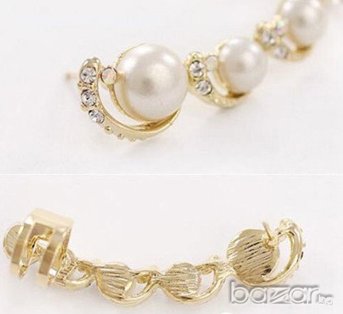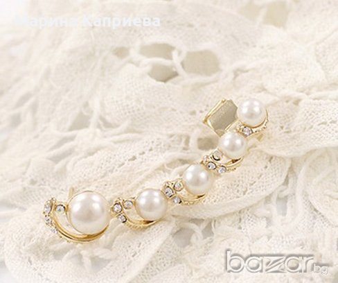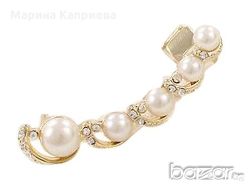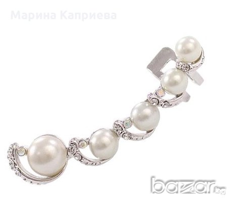 Основата е златиста или сребриста, а перлите бели.