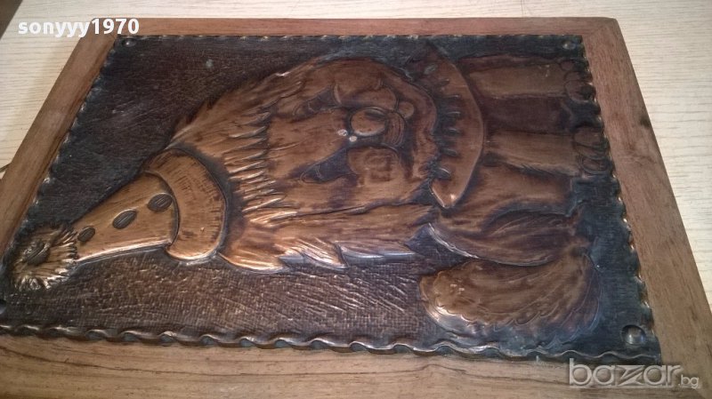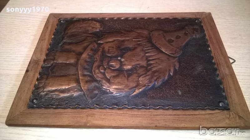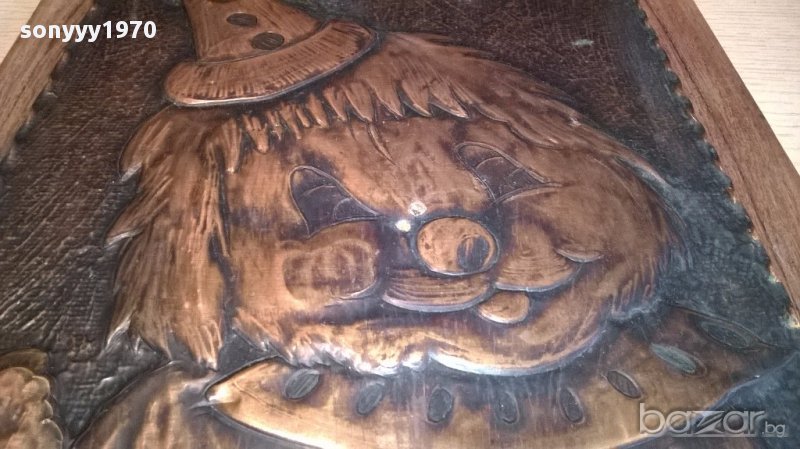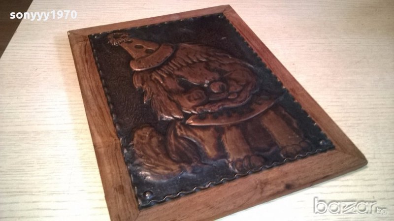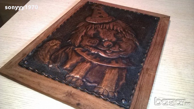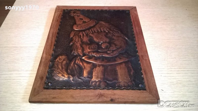 Куче/клоун-мед/месинг-релефна картина/пластика-34/26см-внос швеицария...красива и стилна върху дървена основа с опция за окачване на стена-от днес 28.02.22г пращаме със спиди или еконт с преглед и тест след превод на капаро за куриерската услуга поради зачестили некоректни потребители-поръчки само в тук в саита! по телефона и със смс не! краини цени! бартери не правиме! всеки ден нови неща-още 2-3 наши обяви тук