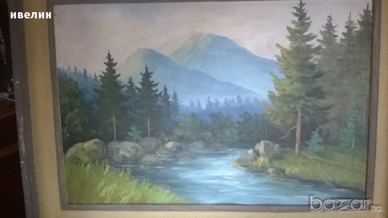 картина-пейзаж.масло на картон с дървена рамка.размери 71см/51см,вътрешни 58см/38см.