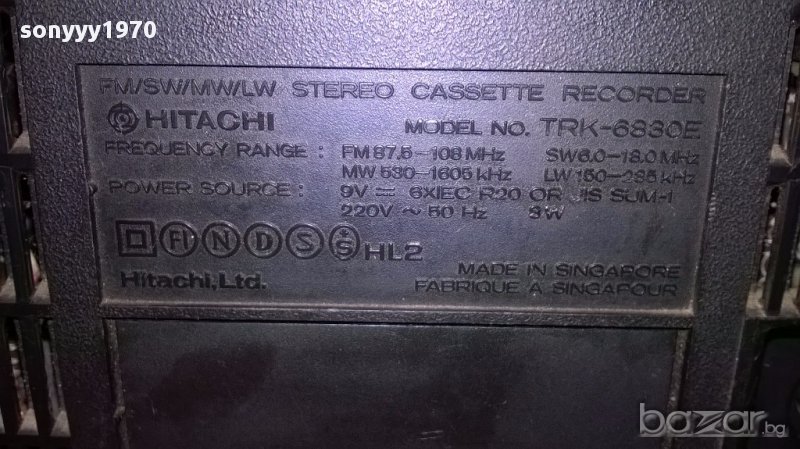 hitachi trk-6830e-здрава касета и тунер-внос швеицария...здрав ремък и свири и на касета и на радио дори и без антената която липсва...има кабел за 220в и си е отзад прибран-от днес 28.02.22г пращаме със спиди или еконт с преглед и тест след превод на капаро за куриерската услуга поради зачестили некоректни потребители-поръчки само тук в саита! по телефона и със смс не! краини цени! бартери не правиме! всеки ден нови неща-още 2-3 наши обяви тук