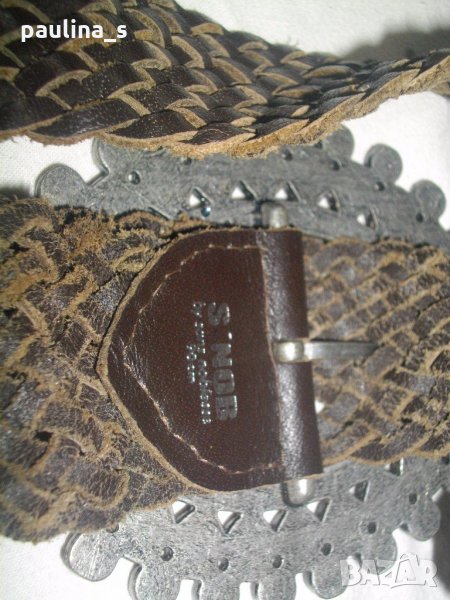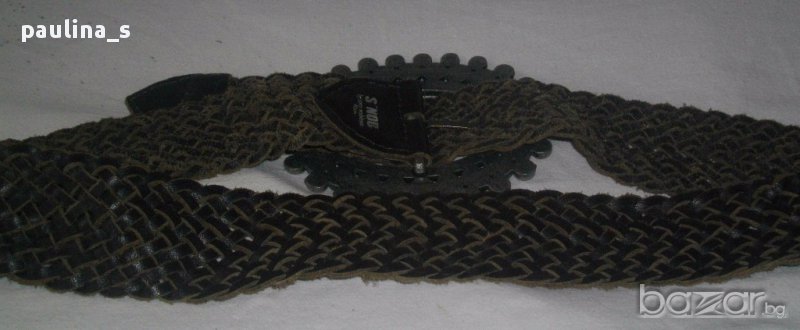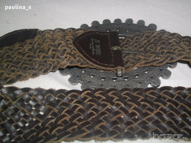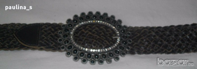 1. Дизайнерски колан от естествена кожа. Токата е декорирана с черни камъни, масивна, екстравагантна. Кожената част е в тъмно кафяво и е от сплетени в сложна плетеница кожени ленти, между които става закопчаването. Коланът може да се носи като декориращ аксесоар и с успех приложен към дънки. Бранда си дизайнерски с характерните за него декорации. Едно камъчще липсва, съобразено е с цената. Моля, разгледайте и другите обяви и последвайте профила. При покупка за над 70лв, поемам част от доставката до офис на Еконт и правя отстъпка от общата цена, така цената за доставката не изглежда толкова непосилна. Приятно разглеждане. Продажбата е с благотворителна цел, цената е крайна.