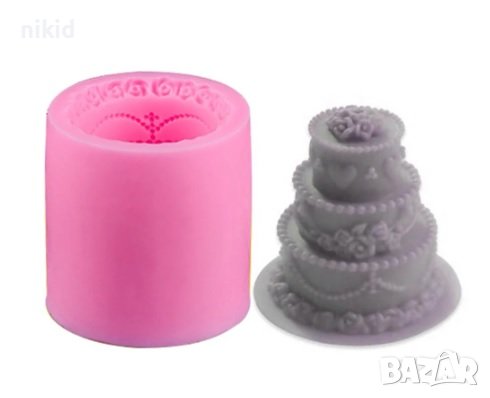 3D висока триетажна торта на етажи цилиндър силиконов молд форма свещ фондан шоколад сапун гипс → Обява 14809476