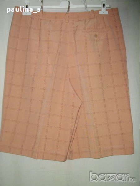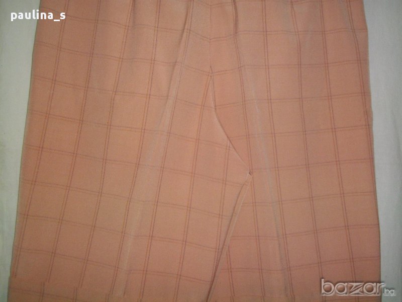1. Дамска пола панталон с басти и шпиц джобове отпред, голям размер. Материята е фин