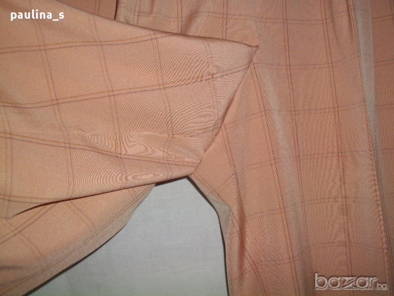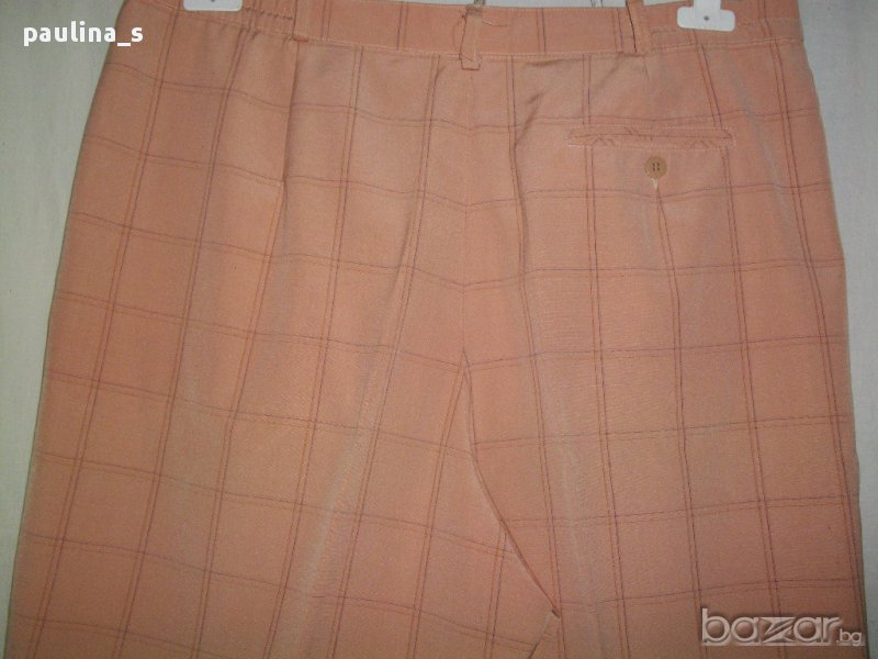 кашмир и спандекс - немачкаема. Моделът е на класически панталон с широки крачоли и с по 2 басти отпред, отзад има джобче с филетки и копче. Отзад има ластични набори, съобразено с размера, може да се носи и с колан за талия, разгледайте и коланите ми.
