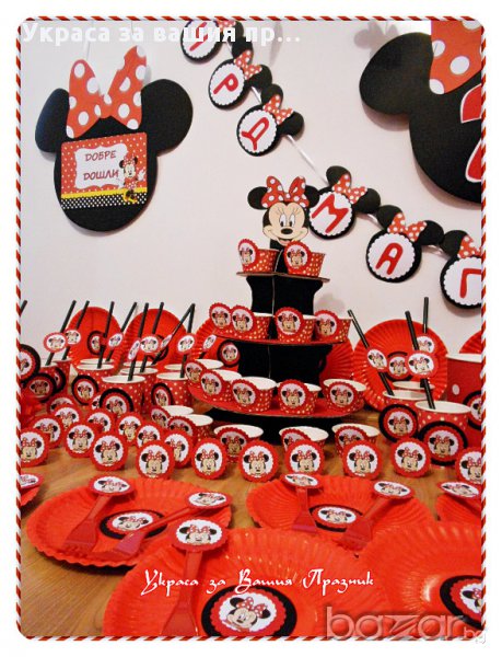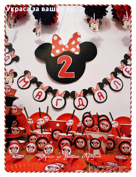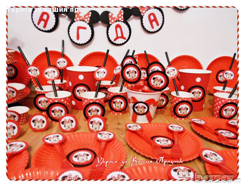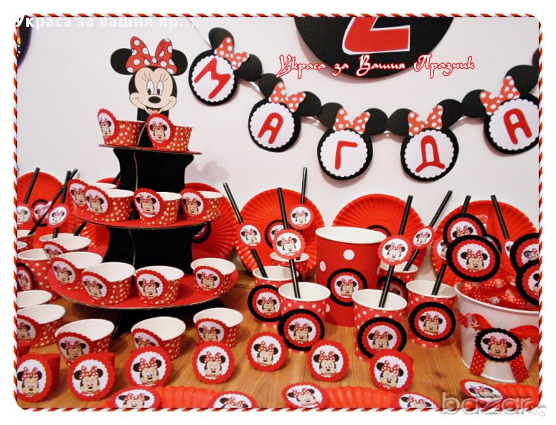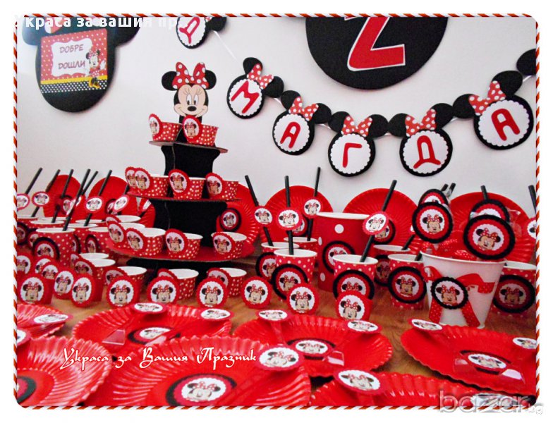 украса аксесоари и подаръчета за детски рожден ден на тема Мини Маус