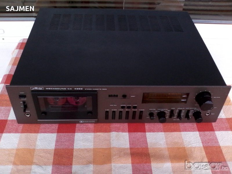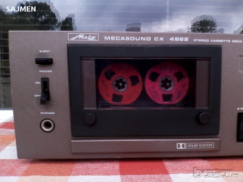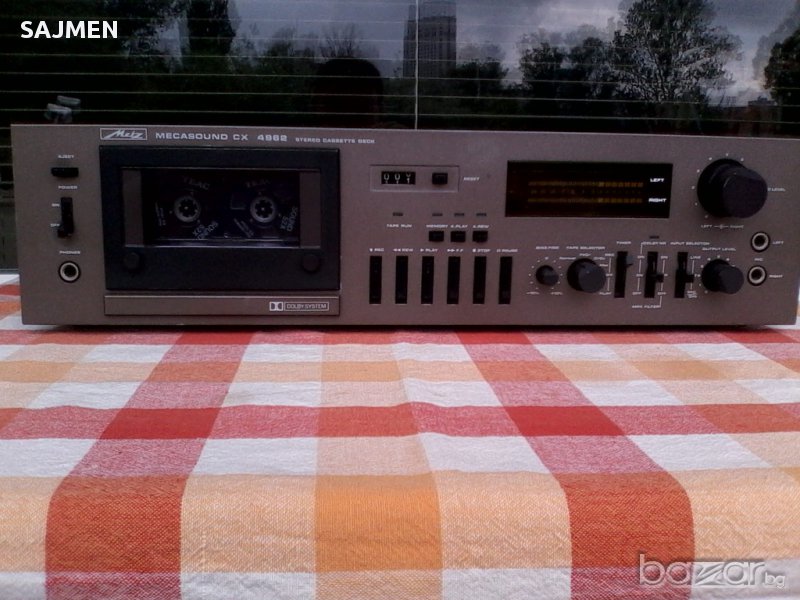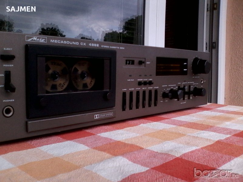Продавам дек Metz cx-4962.bias fine dolbi nr ,mpx filter декът е преминал пълна профилактикав сервиз има подсветка на гнездотосъс светеща клавиатура,със големи двуцветни индикатори зелено към червено записва и свири по добре от много триглави декове ,ръчно избиране на позициите нормал,хром,метал глави сендастови teac –перфектен,ЦЕНА 600,ЛВ