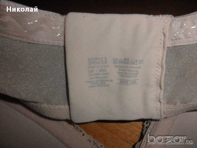Сутиен без презрамки цвят телесен размер 85 G на фирмата M&S със подплънка и банел има силикон по краищата за по добро прилепяне към тялото четворна кукичка на закопчване пробван е веднъж.