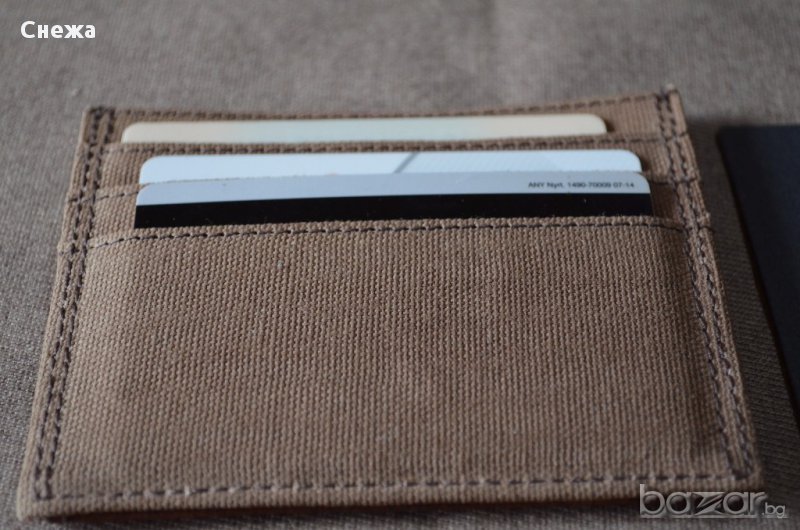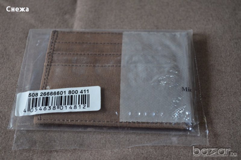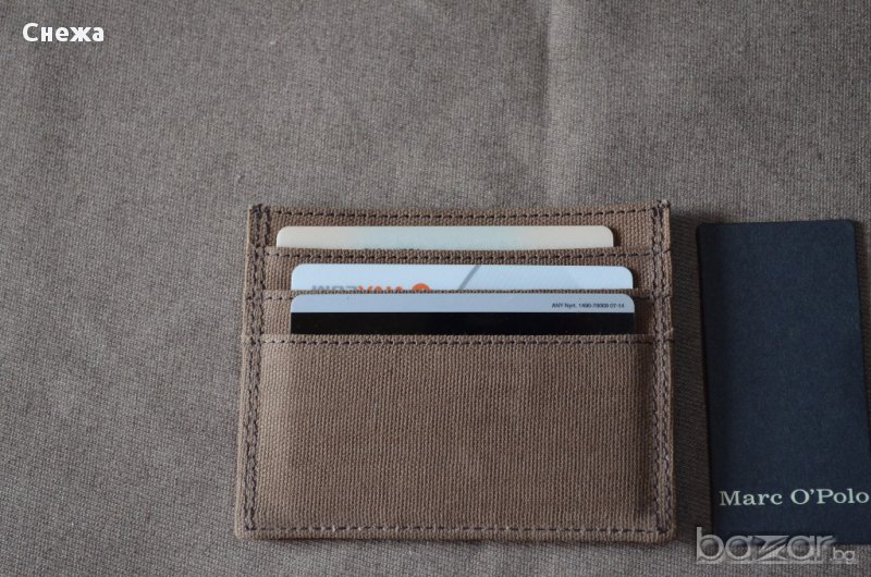 Чисто нов картодържач с етикета и в найлоновата си опаковка. Оригинален е на Германската фирмата Marc O'Polo. Хоризонтален тип е и е изработен в комбинация от кафява естествена кожа и текстил. Има допълнително поставен материал за RFID защита предпазващ вашите данни от кражба. Тънък и компактен модел, който може да се събере във всеки един джоб и разполага общо с: