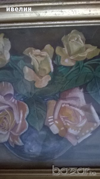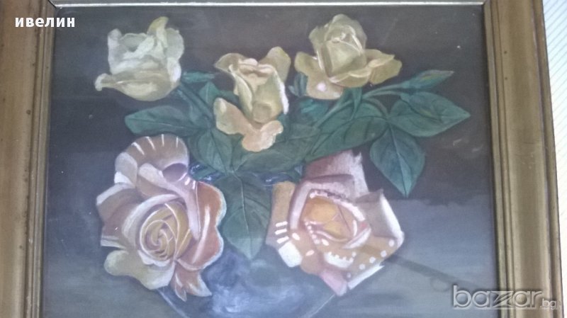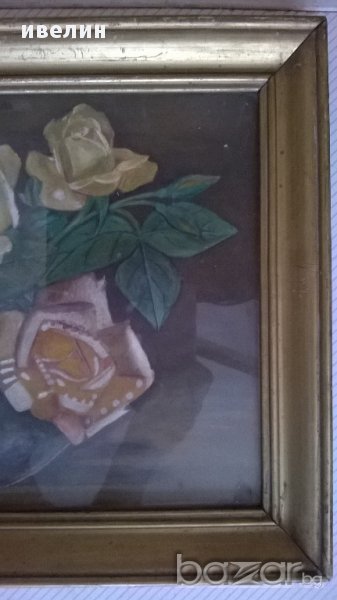 стара картина-цветя.масло на картон.рамка със стъкло.размери 38см/31см,вътрешни 31см/24см.