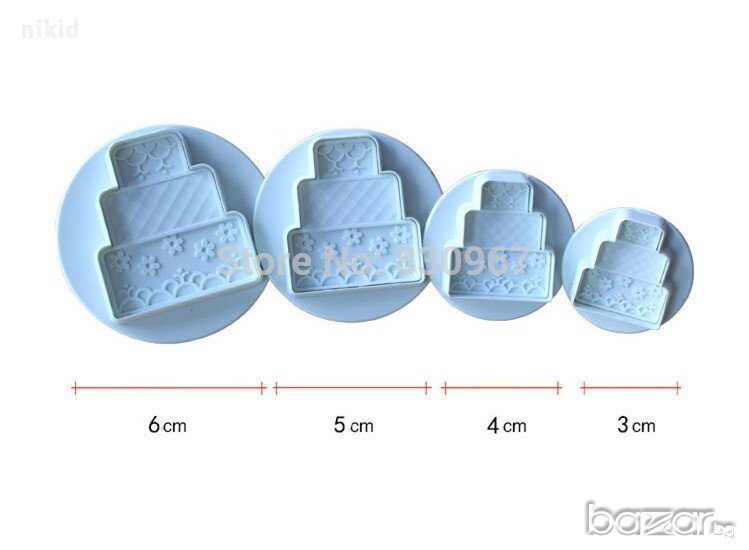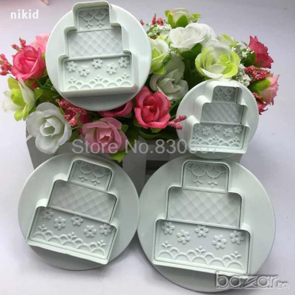триетажна торта на етажи 4 бр пластмасови резци резец форма форми украса декор фондан с бутало → Обява 14908235