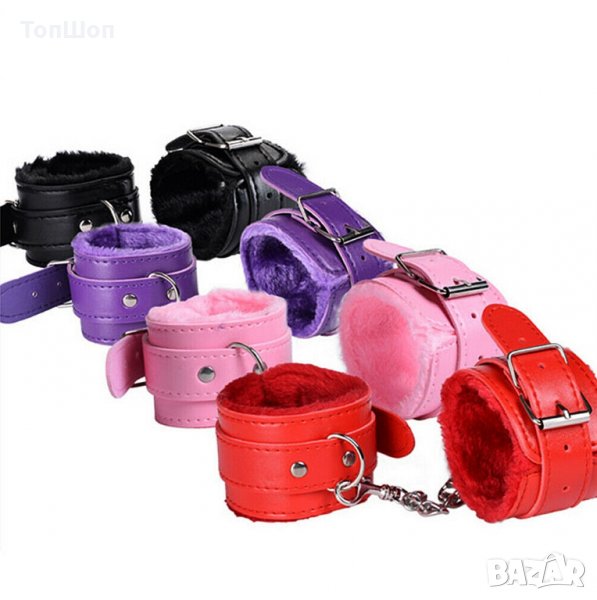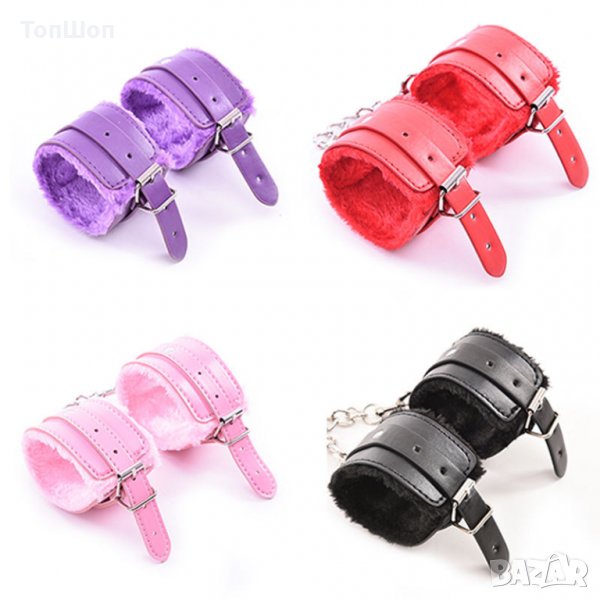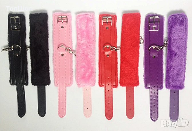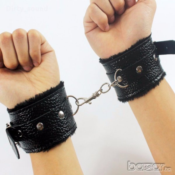 Еротични кожени белезници с пухчета - Супер удобни , лесно закачащи и откачащи !