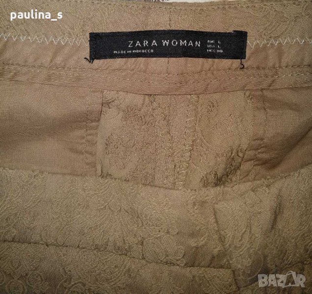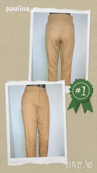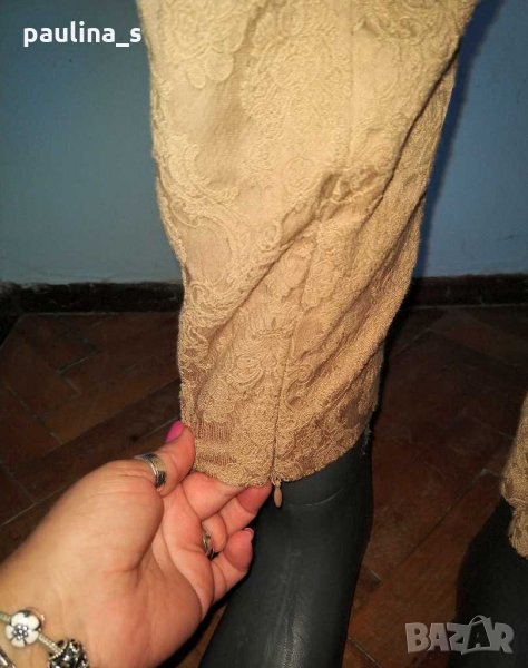 1️⃣ . Колаж / M / 2XL - "Zara" Woman. Цената е крайна 44,99лв / 22,5 евро. Дамски дантелен панталон, с коси джобове. Моделът е изчистен, прави крачоли с нормална до леко ниска талия, като акцентът на дрехата е в платът - умерено еластична, сатенирана, гладка основа с релефна памучна дантела на флорални мотиви. Състав по етикет: 74% памук, 24% полиестер, 2% ликра. Дрехата е много женствена, впечатляваща и романтична, долу крачолите завършват със скрити ципове отвътре. Качеството и изработката са гарантирани от бранда.