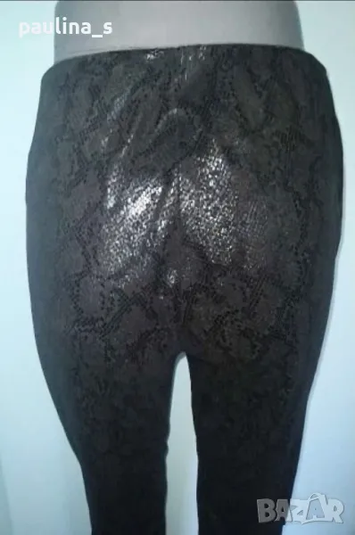 2️⃣. Колаж / M / 2XL - Луксозен панталон "Zara" basic / с кожен змийски принт ефект. Цената е крайна 39,99лв / 20 евро. Луксозен брандов панталон тип клин с кожен змийски принт ефект. Платът е еластичен и същевременно релефен и контрастен. Моделът е по крака с цип в долната вътрешна част на крачолите. Изключително ефектна дреха, има си идентификационен номер на производство.