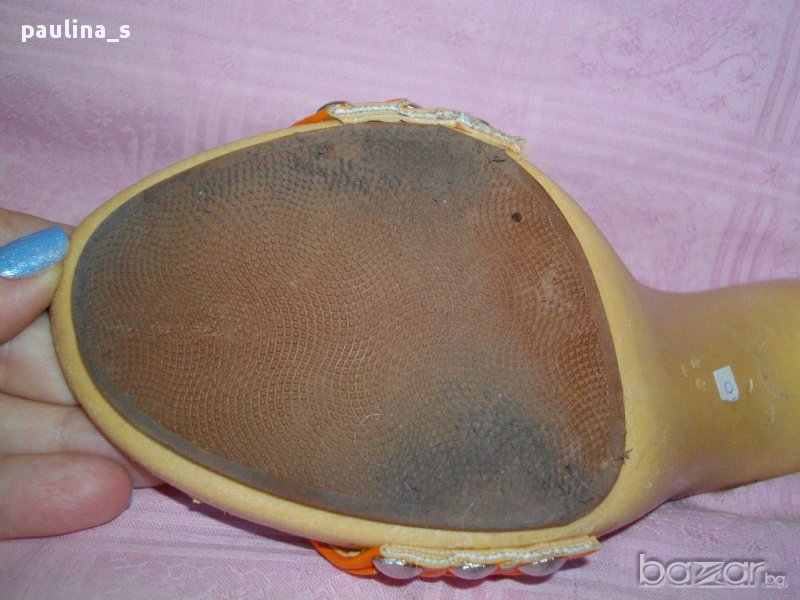 Оранжеви чехли, произведени в Гърция, за износ в Италия. Почти не са носени, съвсем запазени, вижда се от снимките. Моля, разгледайте и другите обяви и последвайте профила. При покупка за над 70лв, поемам част от доставката до офис на Еконт и правя отстъпка от общата цена, така цената за доставката не изглежда твърде непосилна. Приятно разглеждане. Продажбата е с благотворителна цел, цената е крайна. Благодаря за вниманието и отделеното време 🙂