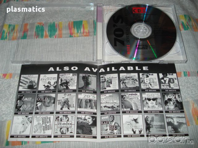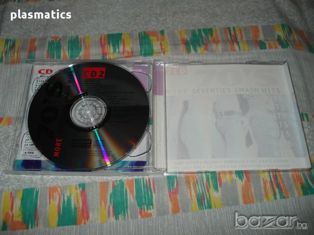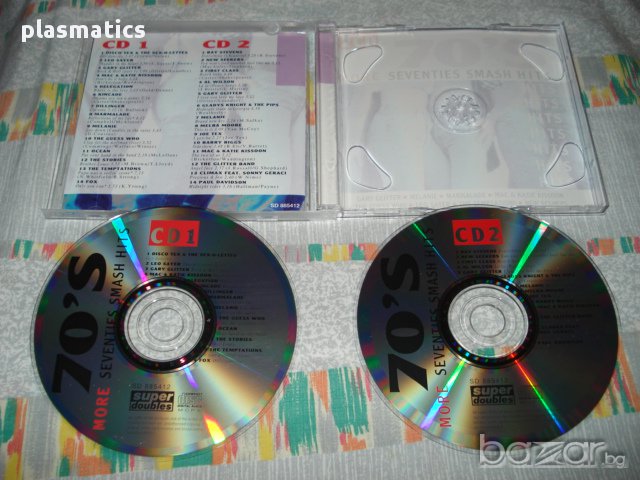 MORE SEVENTIES SMASH HITS - 2CDs - 1998г. Оригинални холандси дискове с хитове от 70-те г. на едни от най-популярните изпълнители. Дисковете са чисти, без драскотини и са като нови. Tracklist: 1-1 Disco Tex & His Sex-O-Lettes – Get Dancing 3:47 1-2 Leo Sayer – Thunder In My Heart 3:30 1-3 Gary Glitter – Rock & Roll (Part 1) 3:00 1-4 Mac And Katie Kissoon – Don't Do It Baby 3:14 1-5 Delegation – Where Is The Love 5:13 1-6 Kincade – Dreams Are Ten A Penny 2:34 1-7 Dillinger – Cocaine 5:12 1-8 Marmalade, The – Reflections Of My Life 4:12 1-9 Melanie (2) – Lay Down (Candles In The Rain) 3:43 1-10 Guess Who, The – Clap For The Wolfman (Live) 3:52 1-11 Ocean (3) – Put Your Hand In The Hand 2:19 1-12 Stories, The* – Brother Louie 3:55 1-13 Temptations, The – Papa Was A Rollin' Stone 7:13 1-14 Fox (3) – Only You Can 1:53 2-1 Ray Stevens – Everything Is Beautiful 3:28 2-2 New Seekers, The – You Won't Find Another Fool Like Me 3:12 2-3 First Class (3) – Beach Baby 4:49 2-4 Al Wilson – La La (Peace Song) 3:50 2-5 Gary Glitter – I Love You To Love Me 3:12 2-6 Gladys Knight And The Pips – Midnight Train To Georgia 4:38 2-7 Melanie (2) – Brand New Key 2:24 2-8 Melba Moore – This Is It 3:09 2-9 Joe Tex – I Gotcha 2:27 2-10 Barry Biggs – Sideshow 3:48 2-11 Mac And Katie Kissoon – The Two Of Us 3:12 2-12 Glitter Band, The – Angel Face 2:57 2-13 Climax (6) – Precious & Few Featuring – Sonny Geraci 2:40 2-14 Paul Davidson (2) – Midnight Rider 3:16