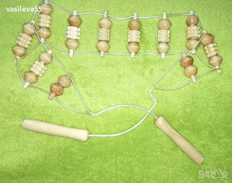 - Масажор дървен гръб и крака, лентов. Използва се като загряващо средство. Особено подходящ за трудно достъпни места като пояс, гръб, шия и рамене. Дължина: 92см. Ново, Цена 5лв