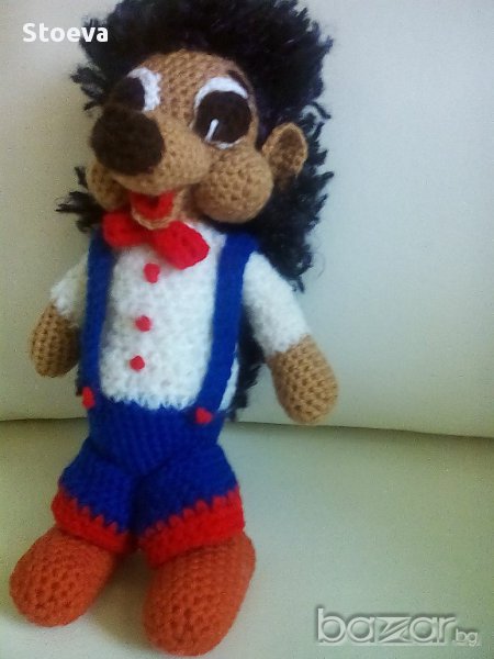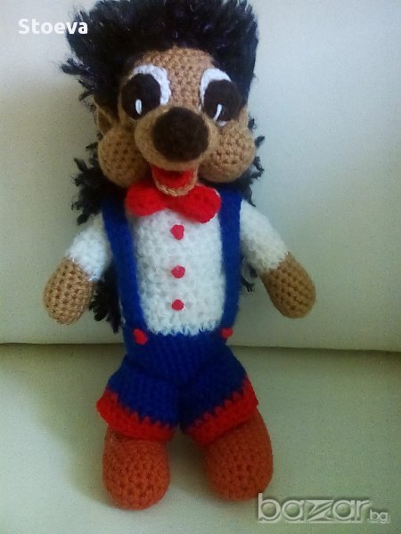 Таралежчето Ежко -Бежко търси приятели . Изплетен е от памучни и полиакрилни прежди и е пълен със силиконов пух ,височина : 26 см., възможност за пране. Стои изправен самостоятелно . Доставка с ЕКОНТ с 10% отстъпка от цената за доставка , наложен платеж .