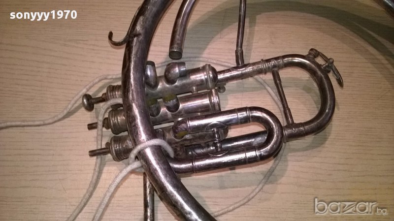 АНТИКА-КОЛЕКЦИЯ-РЕТРО-Тромбон 65/35см-сребро-внос швеицария...за колекция или ползване...има нужда от малко лъскане и грижи...може и да се окачи на стена...нов внос има и мущук-от днес 28.02.22г пращаме със спиди или еконт с преглед и тест след превод на капаро за куриерската услуга поради зачестили некоректни потребители-поръчки само в тук в саита! по телефона и със смс не! краини цени! бартери не правиме! всеки ден нови неща-още над 18000 обяви тук
