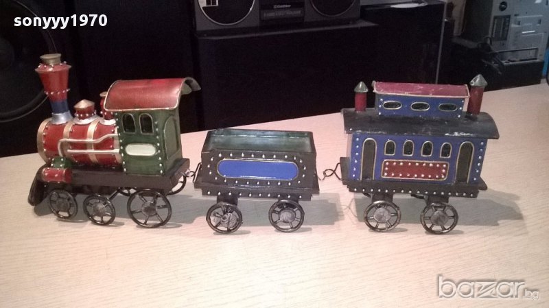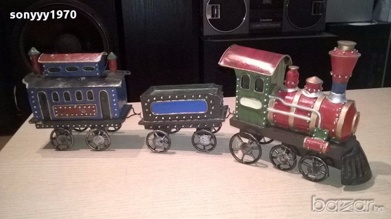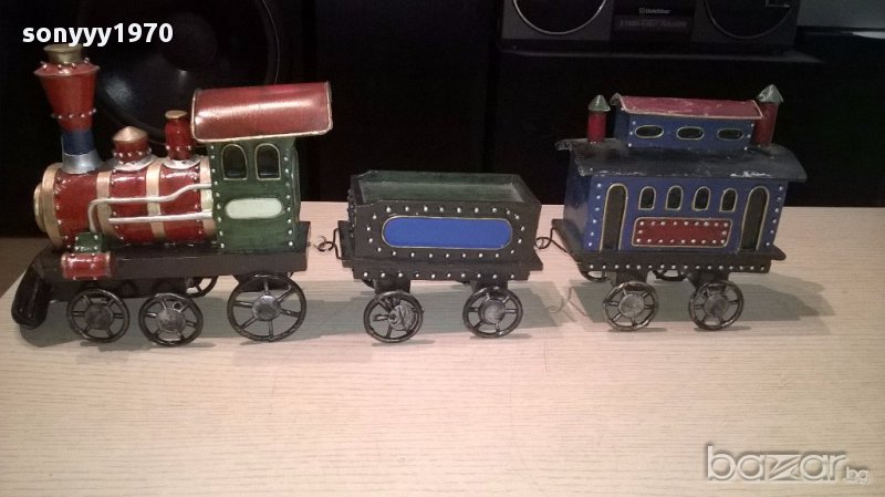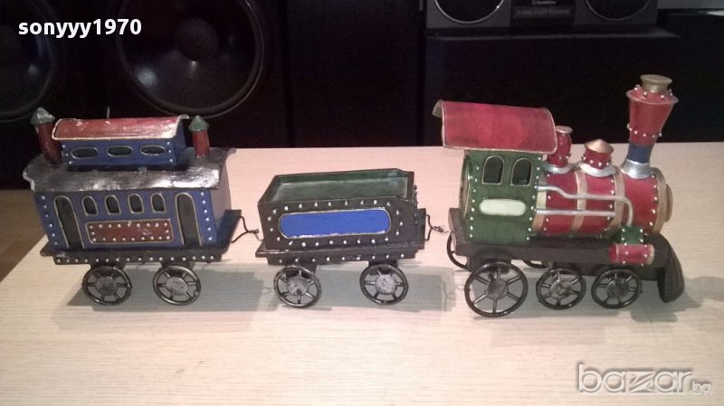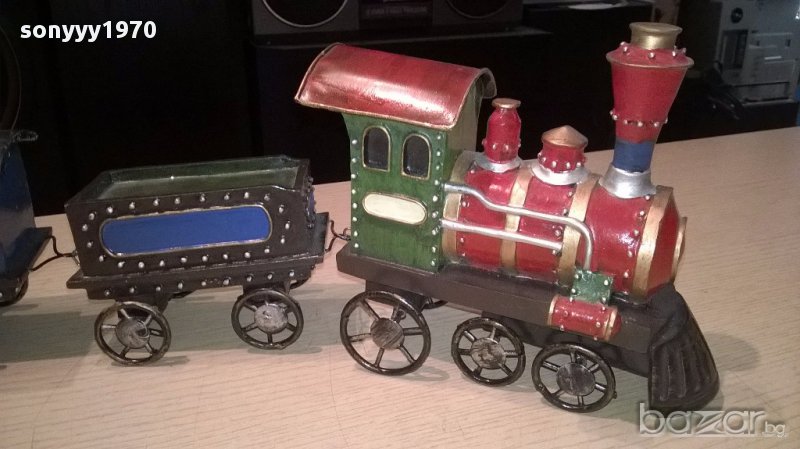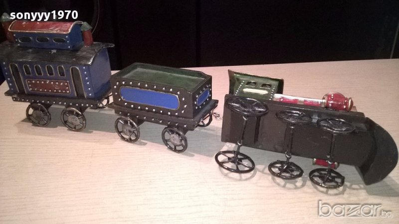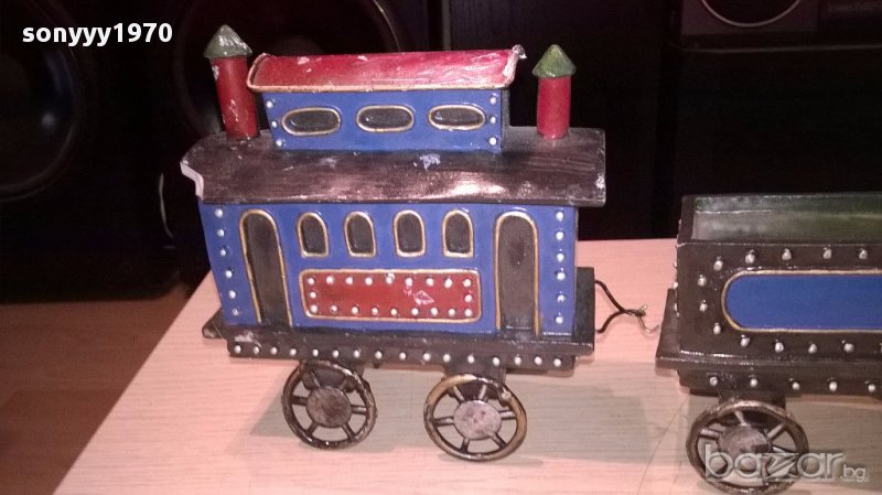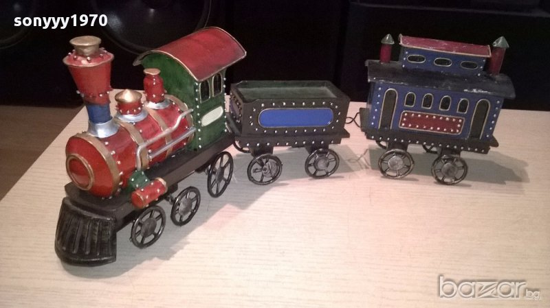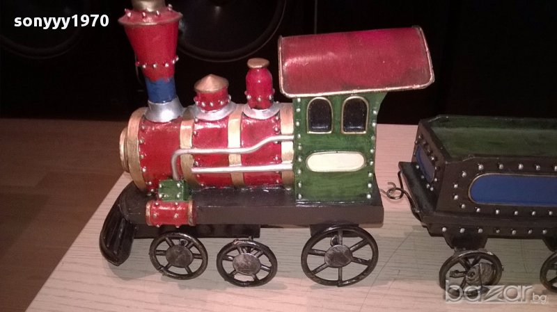 Влакче-композиция с вагони-50/18/9см-внос швеицария...ретро влак-дърво метал...мед/месинг...ръчна изработка...красота и стил...внесено е вчера от швеицария-от днес 28.02.22г пращаме със спиди или еконт с преглед и тест след превод на капаро за куриерската услуга поради зачестили некоректни потребители-поръчки само тук в саита! по телефона и със смс не! краини цени! бартери не правиме! всеки ден нови неща-още 2-3 наши обяви тук