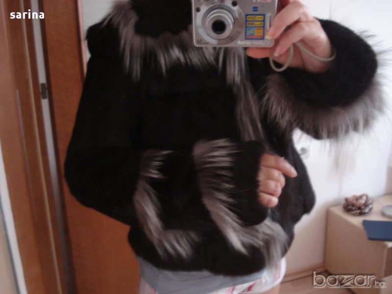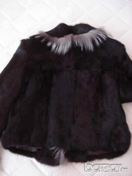 Черната част на кожуха е от заек, а светлата част - от лисица. Удобен и елегантен. Подходящ както за ежедневието, така и за по-специален случай.