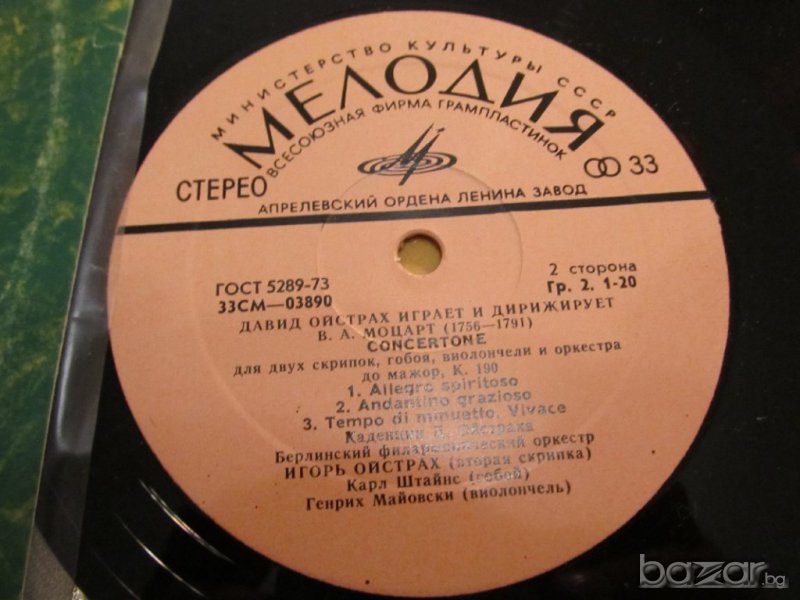 Грамофонна плоча - Моцарт - класическа музика - изд.73 година.