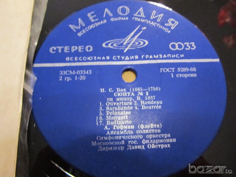 Грамофонна плоча - Бах - Суита н.2 - класическа музика - изд. 68 година.
