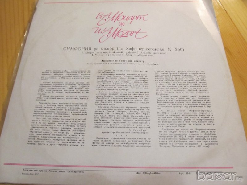 Грамофонна плоча класика - Волфганг Амадеус Моцарт - симфония ремажор - класическа музика