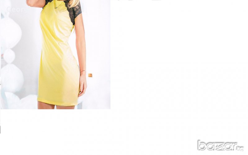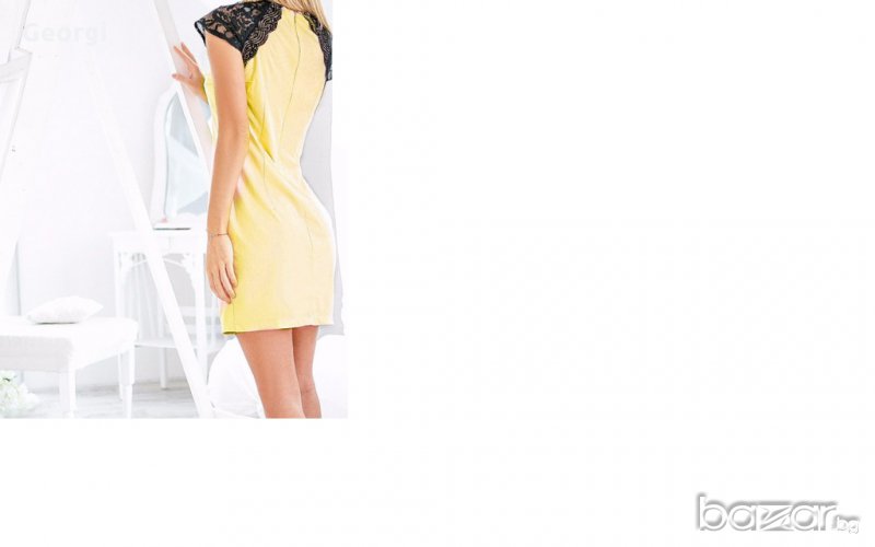 Лятна рокля в свежо жълт цвят и черни дантела по ръкавите. Лека и тънка материя, отзад се закопчава с цип. Размери - М,L.