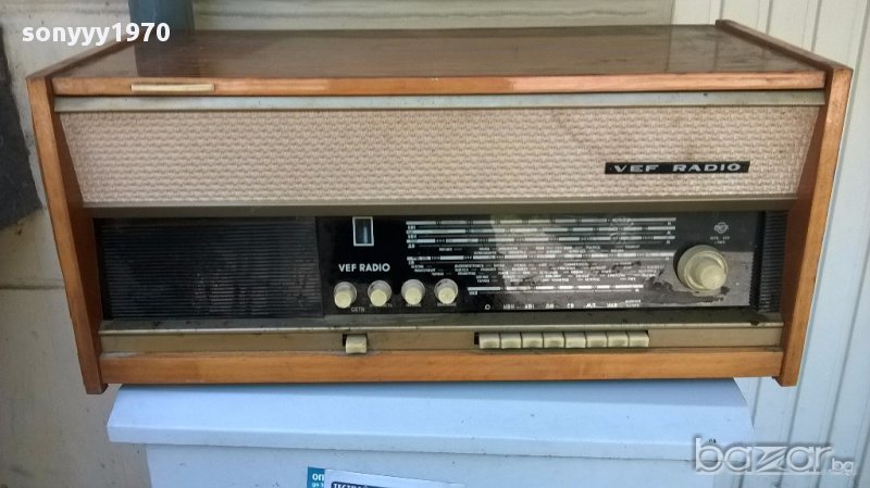 Vef radio-ретро за колекция...за колекция или интериорни решения...за украса или за възтановяване или части...старо има и игла на грамофона...не съм го тествал-от днес 28.02.22г пращаме със спиди или еконт с преглед и тест след превод на капаро за куриерската услуга поради зачестили некоректни потребители-поръчки само в тук в саита! по телефона и със смс не! краини цени! бартери не правиме! всеки ден нови неща-още 2-3 наши обяви тук