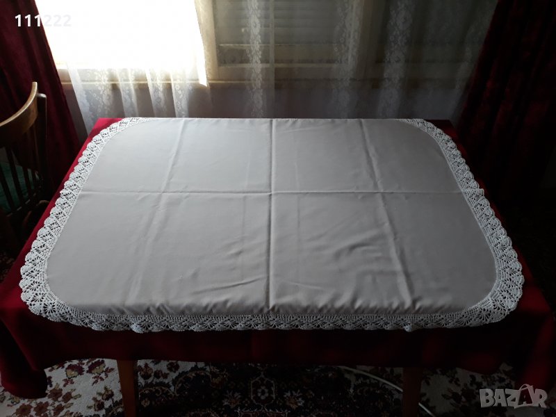 - покривка за правоъгълна масичка; наплитаното на покривката е с дебелина като на салфетките, т.е. по-плътно; размери: 116/92 см