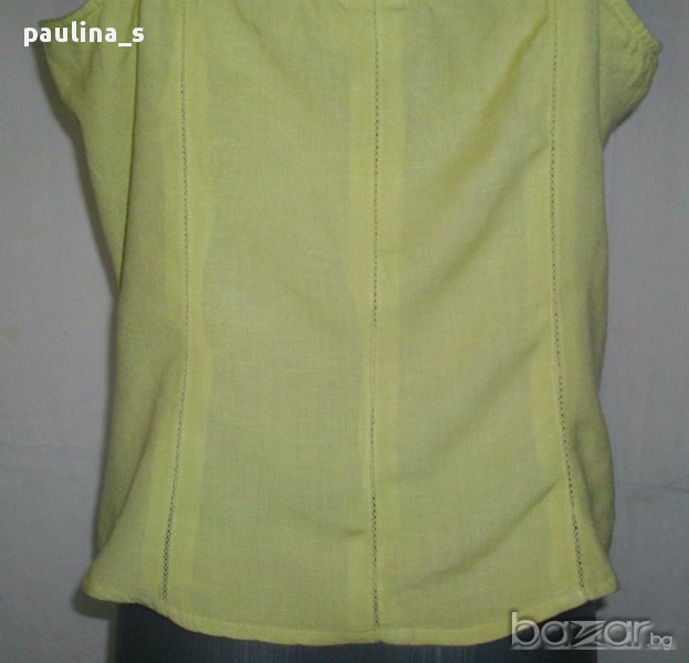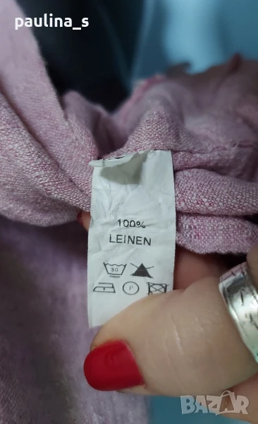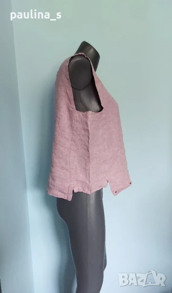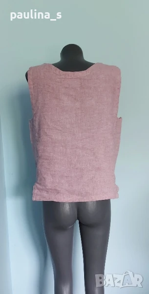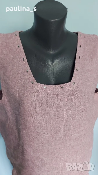 3️⃣. Колаж / XL / 2XL - "Salto". Цената е крайна 19,99лв / 10 евро. Дамски топ без ръкави. Материята е 100% лен, релефен плат в бледо розово. Стеснявана и декорирана около деколтето и долу със сребристи апликации, но вече не ми става. Само апликациитеструват над 9лв в кинкалерията!