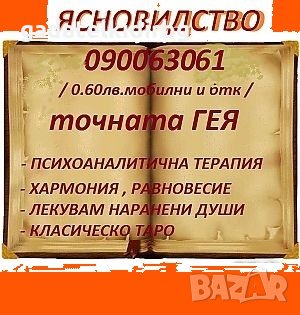 (0.60 лв./0.31 € мин. )ТОЧНО ЯСНОВИДСТВО МАГ ГЕЯ, восъколеене, не злоупотребява с болката. → Обява 15154915