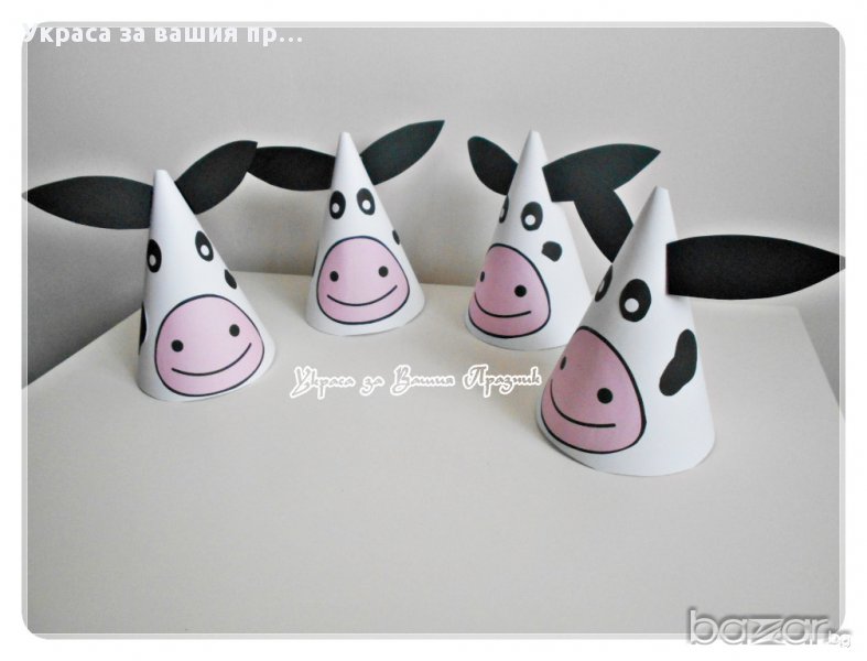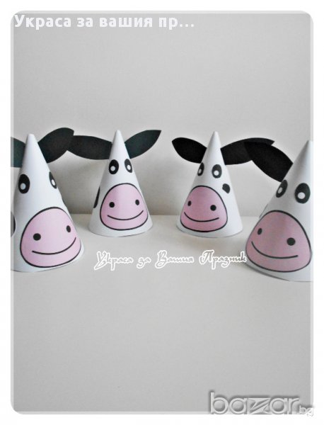 Парти шапки кравичка - за детски рожден ден на тема Ферма