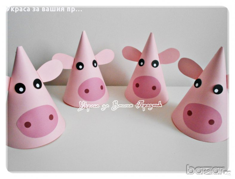 Парти шапки прасенце - за детски рожден ден на тема Ферма