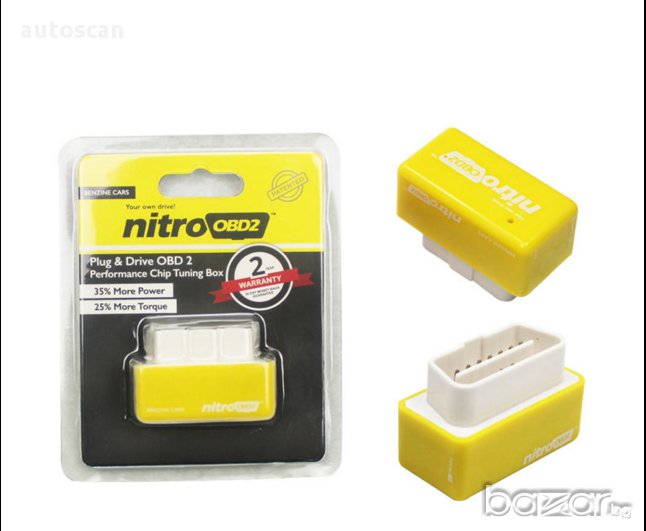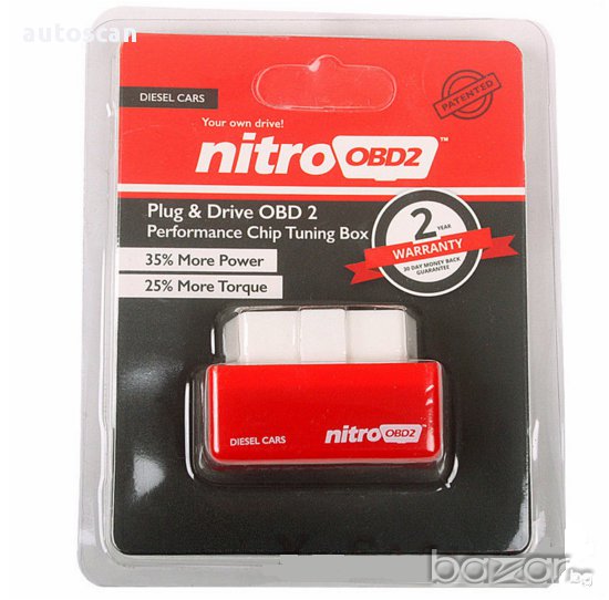 Nitro OBD2 е чип тунинг Box, който се включва в OBD2 конектора на автомобила и по този начин получава информация от компютъра на автомобила (ECU). С получените данни от ECU, Nitro OBD2 настройва количеството гориво, времето на инжектиране и налягане, за да се увеличи производителността на вашия автомобил.