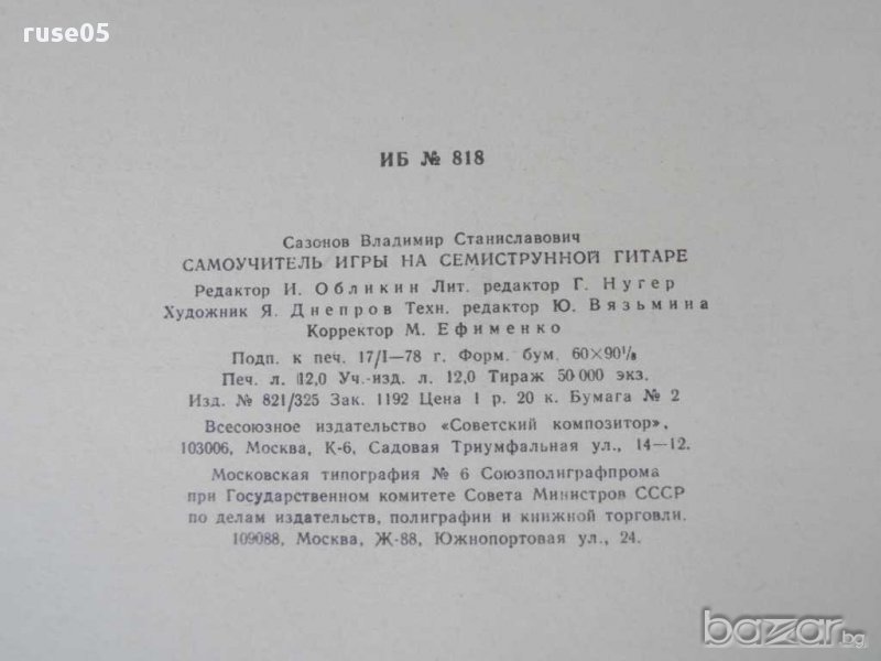 Книга"Самоуч. игры на семиструн. гитаре-В.Сазонов" - 96 стр. → Обява 15170073