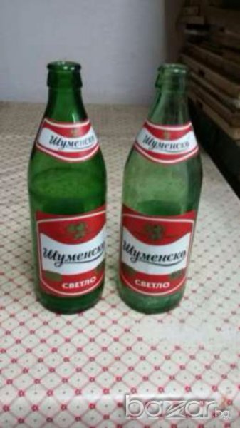 3. Бирени шишета 0.500л. 50бр. с етикет шуменско пиво, шуменско светло, болярка, нектар из абрикосов и яблок и нектар из персиков и яблок по 0.35 евро.