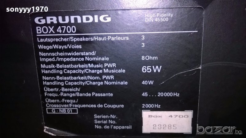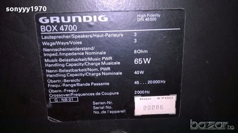 Grundig box4700 high fidelity 65w/8ohm-43/31/24см-внос швеицария...маркови тежки и дълбоки тонколони...нов внос с кабели...без ремонти и забележки...свирят прекрасно-от днес 28.02.22г пращаме със спиди или еконт с преглед и тест след превод на капаро за куриерската услуга поради зачестили некоректни потребители-поръчки само в тук в саита! по телефона и със смс не! краини цени! бартери не правиме! всеки ден нови неща-още 2-3 наши обяви тук