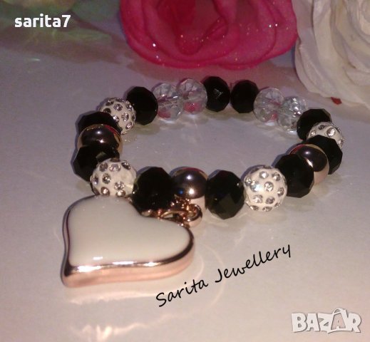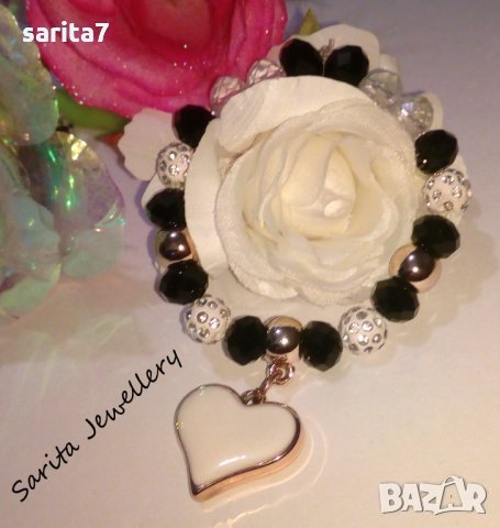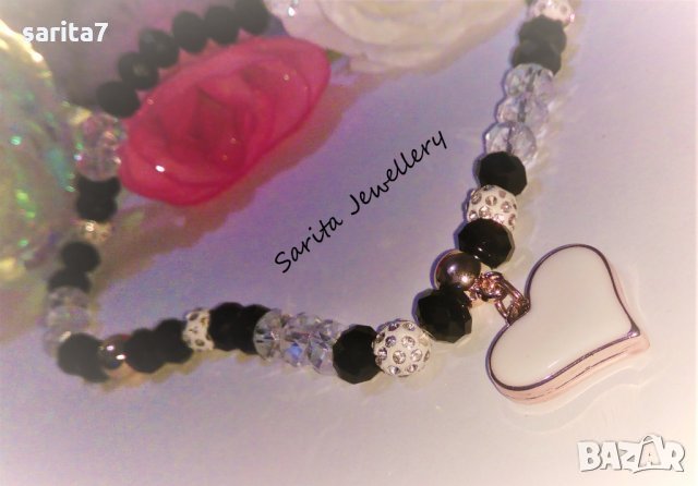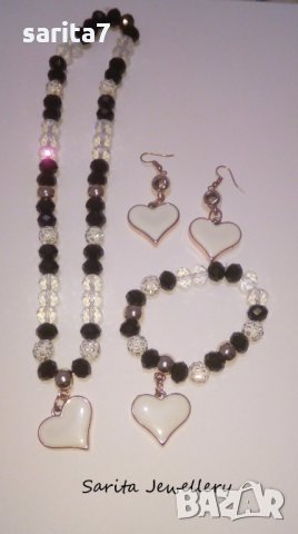 Романтичен комплект от колие, гривна и обеци с бяло сърчице. Ръчно изработени, чудесни за подарък, лимитирана серия, универсален размер.