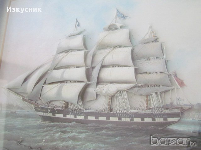 3D картинна апликация.Кораб, излизащ в открито море. Меки, пастелни цветове, индивидуална ръчна изработка и рамкиране. Рамка от естествено дърво. Изработена в Есекс - Англия през 80-те години. Отлично запазена. Никакви наранявания и поражения.