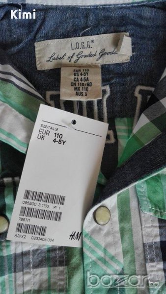 Нова риза на НМ за ръст 110 см или възраст 4-5 г. Ризата е с етикет и става и за подарък.